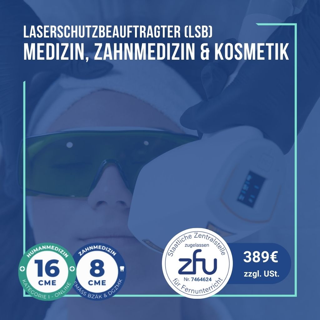 Anwendungsbezogener eLearning-Kurs für Laserschutzbeauftragte (m/w/d) gemäß OStrV und TROS Laserstrahlung zum Erwerb/Auffrischung der Laserschutz-Fachkenntnisse für Laser der Klasse 3R, 3B und 4 für medizinische, tiermedizinische, zahnärztliche und kosmetische Laseranwendungen
